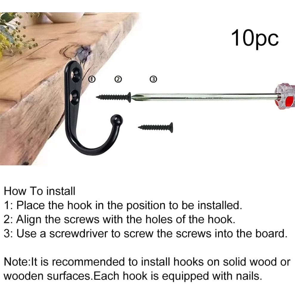 Large Wall Hooks for Hanging Coats - Black Heavy Duty Coat Hooks Wall Mounted, Screw-in Hooks for Towels, Clothes, Backpacks, Bags, Robes, Hats, Keys