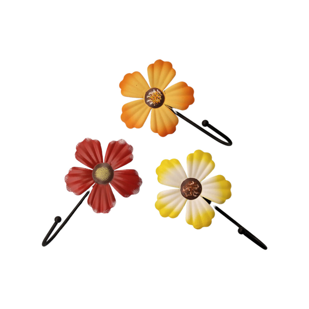 Metal Wall Coat Hooks With Orange Flower Design Iron Wall Hanging Hooks For Coats Hats Towels For Hallway And Kitchen