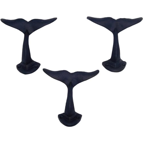Wowser Navy Blue Whale Tail Cast Iron Wall Hooks, Wall Mounted for Hanging Coats, Purses, Towels, Hats, Beach Themed Wall Décor, Set of 3, 4.5 Inches High