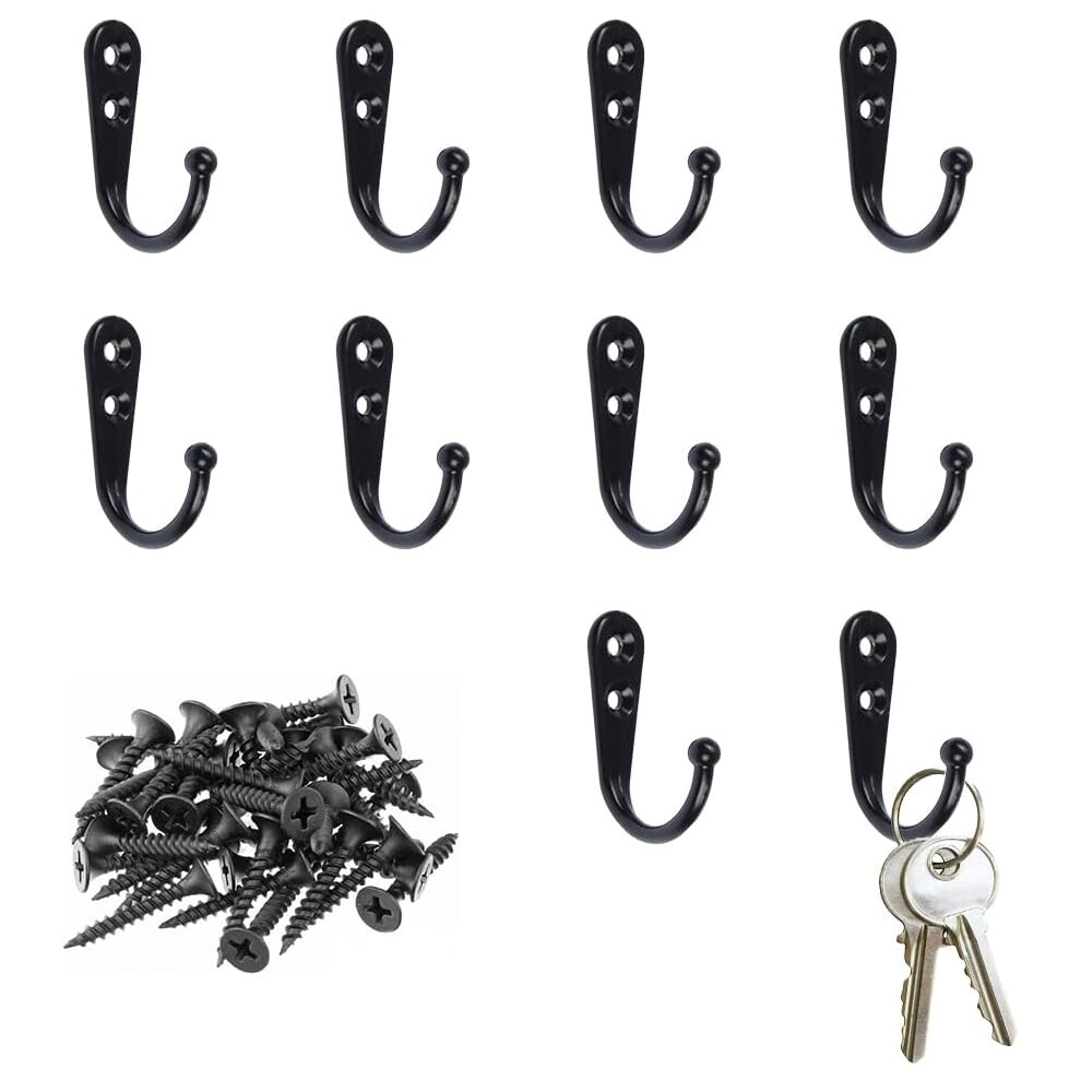 8-Pack Wall Hooks for Hanging Coats - Black Heavy Duty Coat Hook Wall Mounted, Screw-in Hooks for Towels, Clothes, Backpacks, Bags, Robes, Hats, Keys