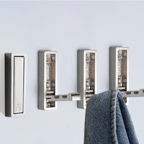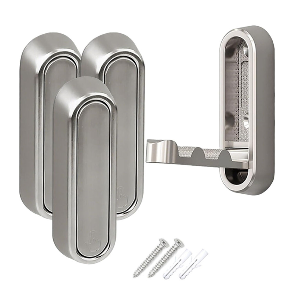 Folding Wall Hook Alloy Telescopic Wall Hook for Hanging Coats Towels Backpack Bags Hooks for Bathroom Closet Entryway Pool and Kitchen Hooks Silver