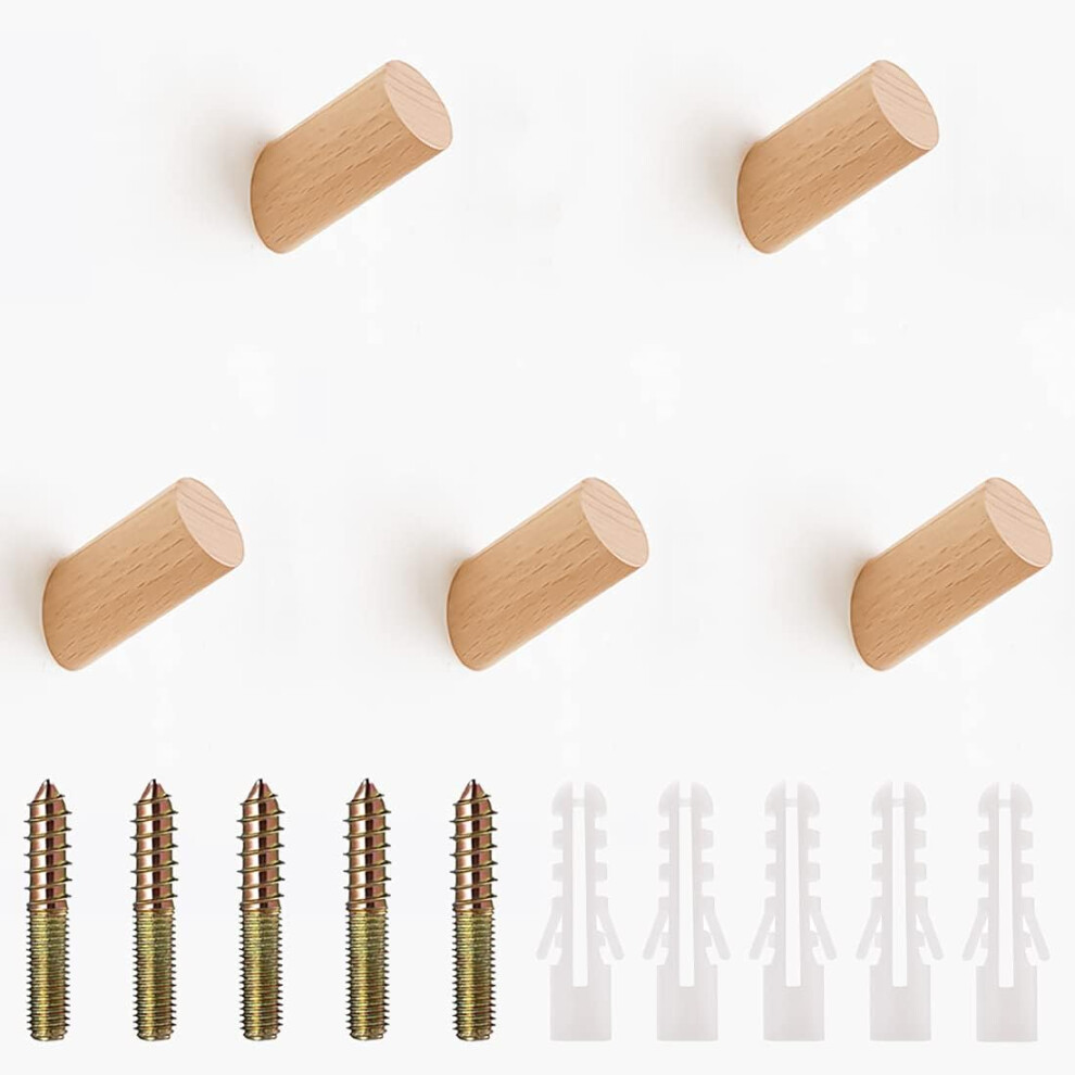 Natural Wood Wall Hooks Wooden Coat Hooks, Heavy Duty Wall Hooks for Hanging Coats, Key, Towels, Purse, Decorative Wall Hooks Double Hooks Design for