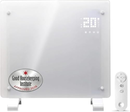 Futura 1000W White Glass WIFI Smart App Control Electric Radiator Heaters for Home, Bathroom Safe Electric Heater Setback Timer Lot 20 & Advanced Thermostat Control Wall Mounted or Floor Standing