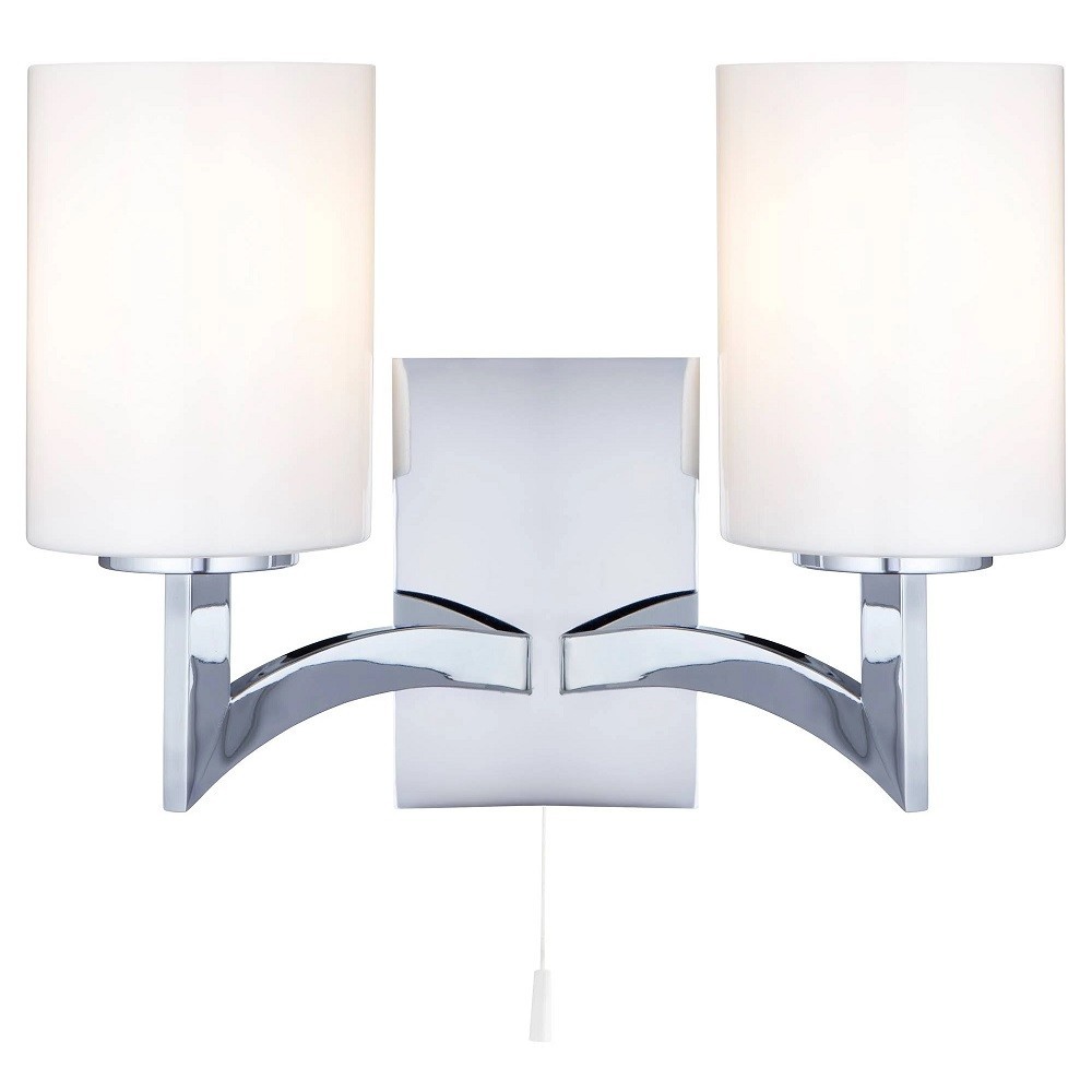 Polished Chrome 2 Lamp Wall Light with White Glass Shades 300mm