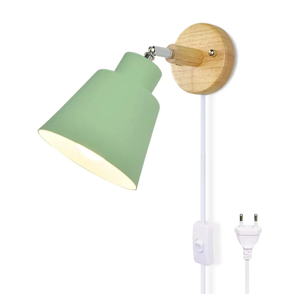 Nordic Wood Wall Lamp with Plug and 1.8 Meters Line Cable with Knob Switch