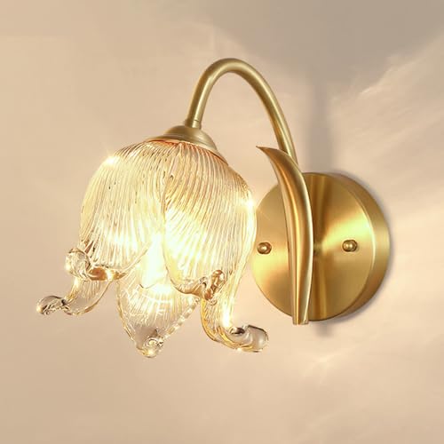lamp Flower Gold Sconce with Glass Shade Modern Mid Century Bathroom Vanity Fixture, 1-Light Brushed Brass Wall Lamps for Bedroom Living Room Hallway