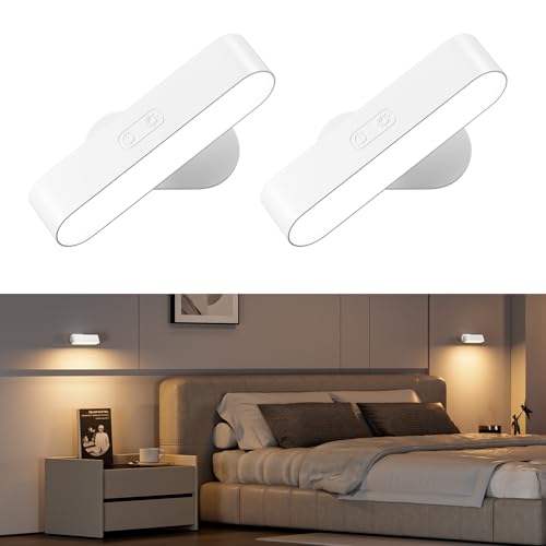 Battery Operated Wall Sconces Set of 2, Rechargeable LED Wall Mounted Light with Remote Control, Stick On Magnetic Wall Lights for Bedroom, 3 Modes Dimmable Bedside Reading Wall Lamps for Bedroom