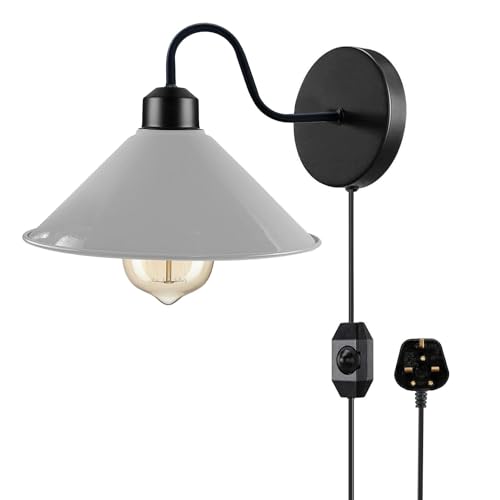 UESJCVXS Retro Industrial Wall Light Plug in Wall Lamp Metal Cone Shape Shade Indoor Light Fitting (Style 5 - Without Bulb)