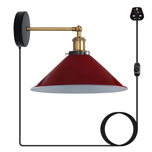 UESJCVXS Industrial Wall Sconce Light Plug in Wall Lamp Arm Lamp Shade E27 fits Perfectly (Without Bulb) (Red)