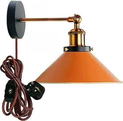 UESJCVXS Industrial Wall Sconce Light Plug in Wall Lamp Arm Lamp Shade E27 fits Perfectly into The Living Room Dining Room Office Kitchen Bedroom (with Bulb) (Orange)