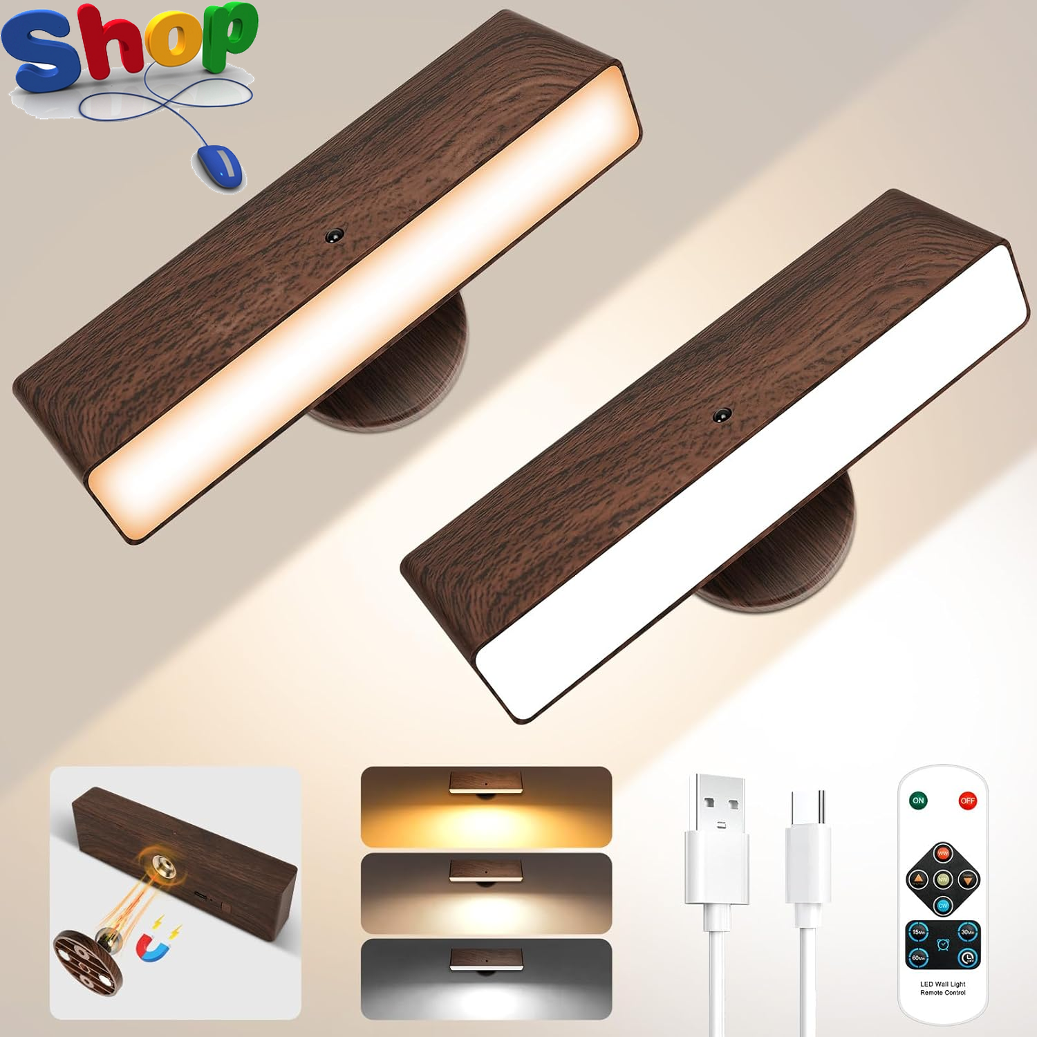 Rechargeable Wall Lights, Battery Operated Wall Light with Remote Control & Touc