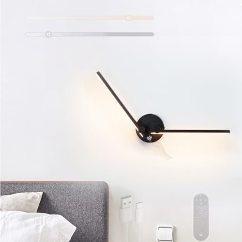 USB Rechargeable Wall Lights Battery Operated, Wireless Wall Light with Remote Control, Dimmable Touch Wall Lamp Indoor, 350° Rotation Black 80CM, Modern Wall Sconces Decor for Bedroom Hallway, 2 Pack