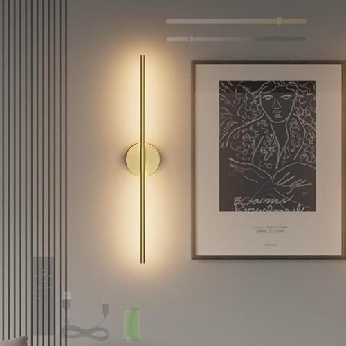 Dehobo Rechargeable Wall Sconce Lights, Battery Operated Wall Lights 3 Color Temperature, Gold Wall Lights Dimmable Wireless with Remote Control Golden 60CM for Living Room Bedroom Hallway, 2 Pack