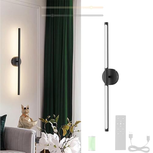 HEERTTOGO Rechargeable Wall Sconce Lights, Battery Operated Wall Lights with Remote Control Black 72CM, Picture Lights for Wall, Modern for Living Room & Bedroom, 1 Pack [Energy Class E]