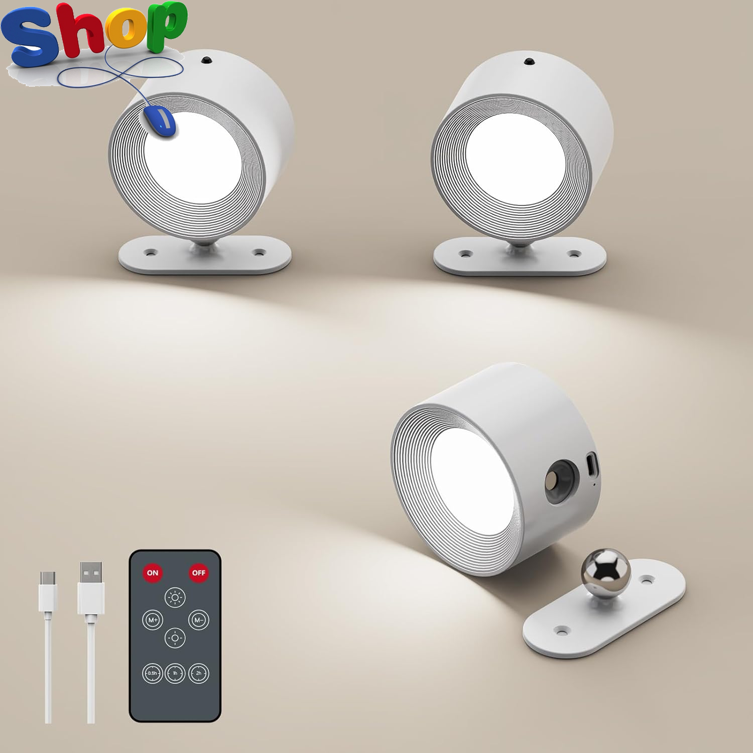QINER Rechargeable LED Wall Lights, USB-C Battery Operated & Wireless Wall Ligh