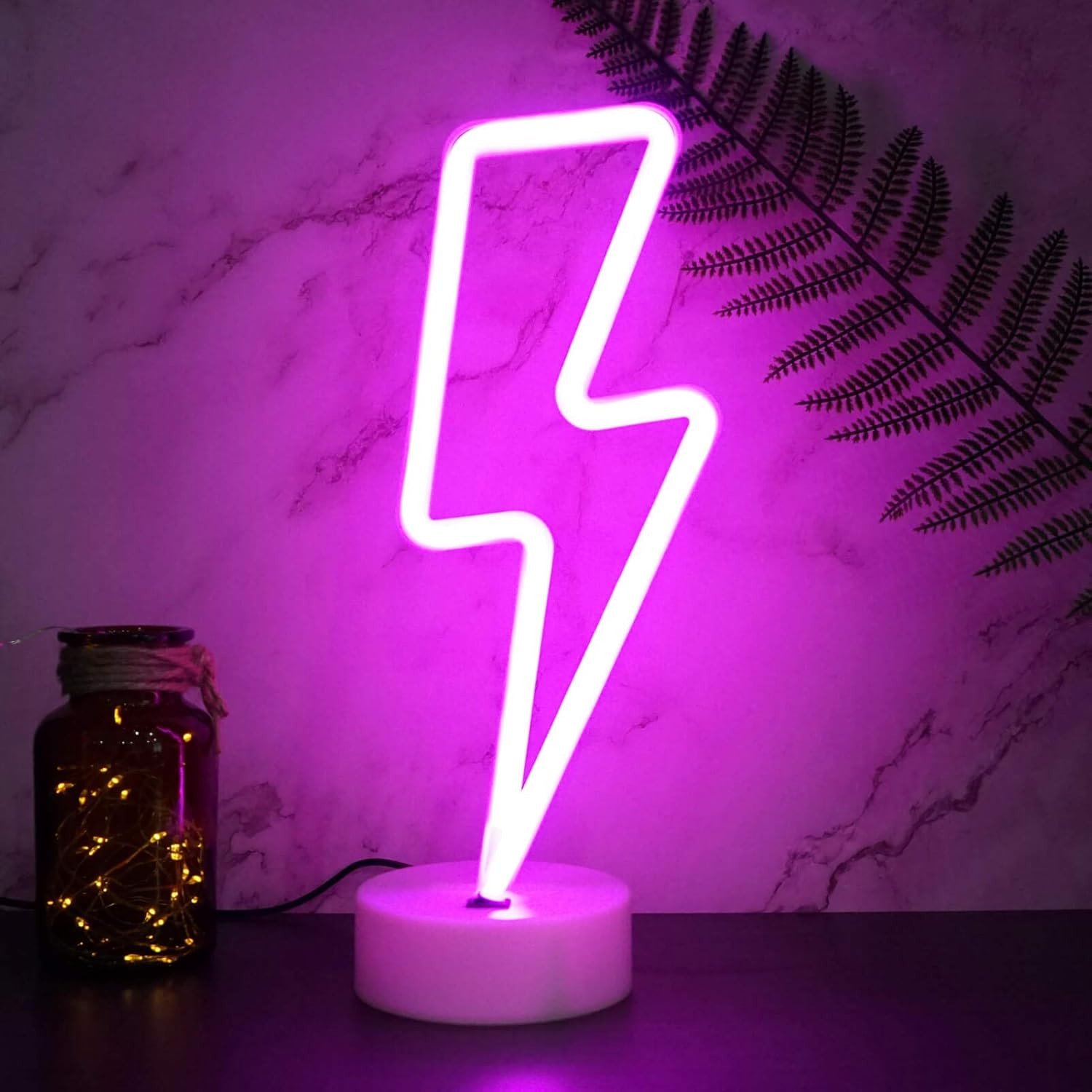 YIVIYAR Pink Lightning Bolt Neon Lights LED Neon Wall Lights USB/Battery Operat
