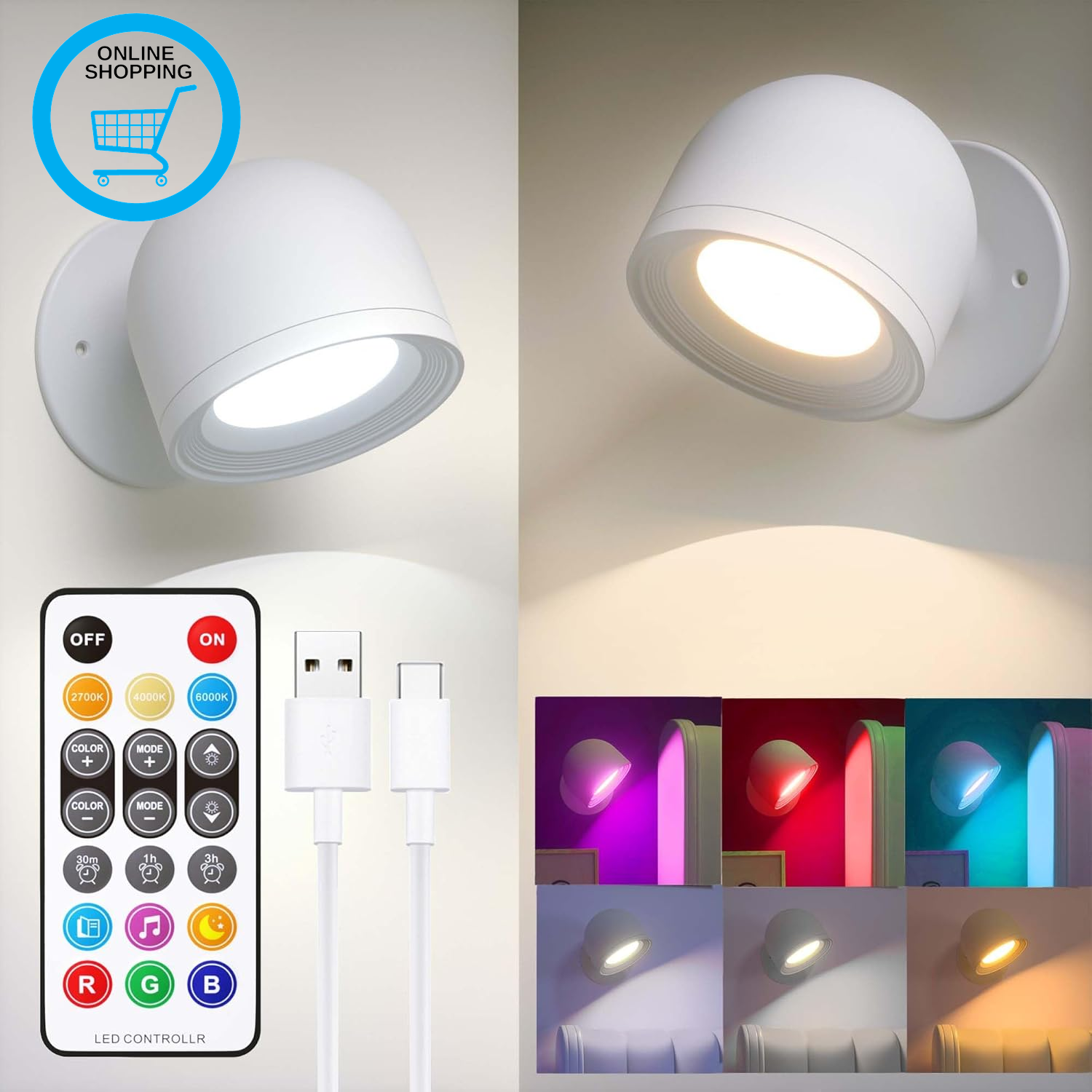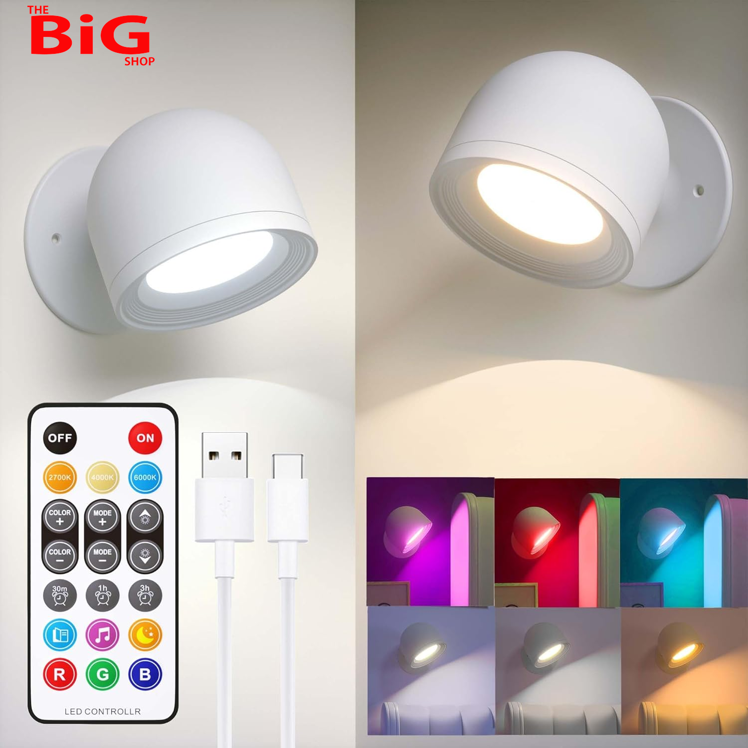 2PCS Rechargeable Wall Lights Indoor, RGBCW Battery Operated Wall Lamp with Remo