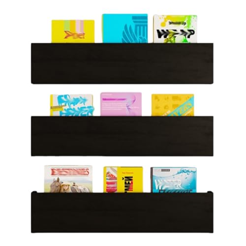 JSWHYBD Set of 3 Long Wall-Mounted Shelves, Hanging Wall Bookshelf, Floating Bookshelves Suitable for Living Rooms, Bedrooms, Hallways, and Offices Black 90cm