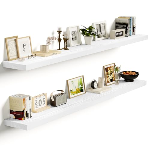 Vivelove White Floating Shelves 55 Inches Long, Wall Display Shelves with Invisible Brackets, for Bathroom Living Room Kitchen Bedroom Office Farmhouse Home Decor, 55x9.3X 1.5 - Set of 2, White