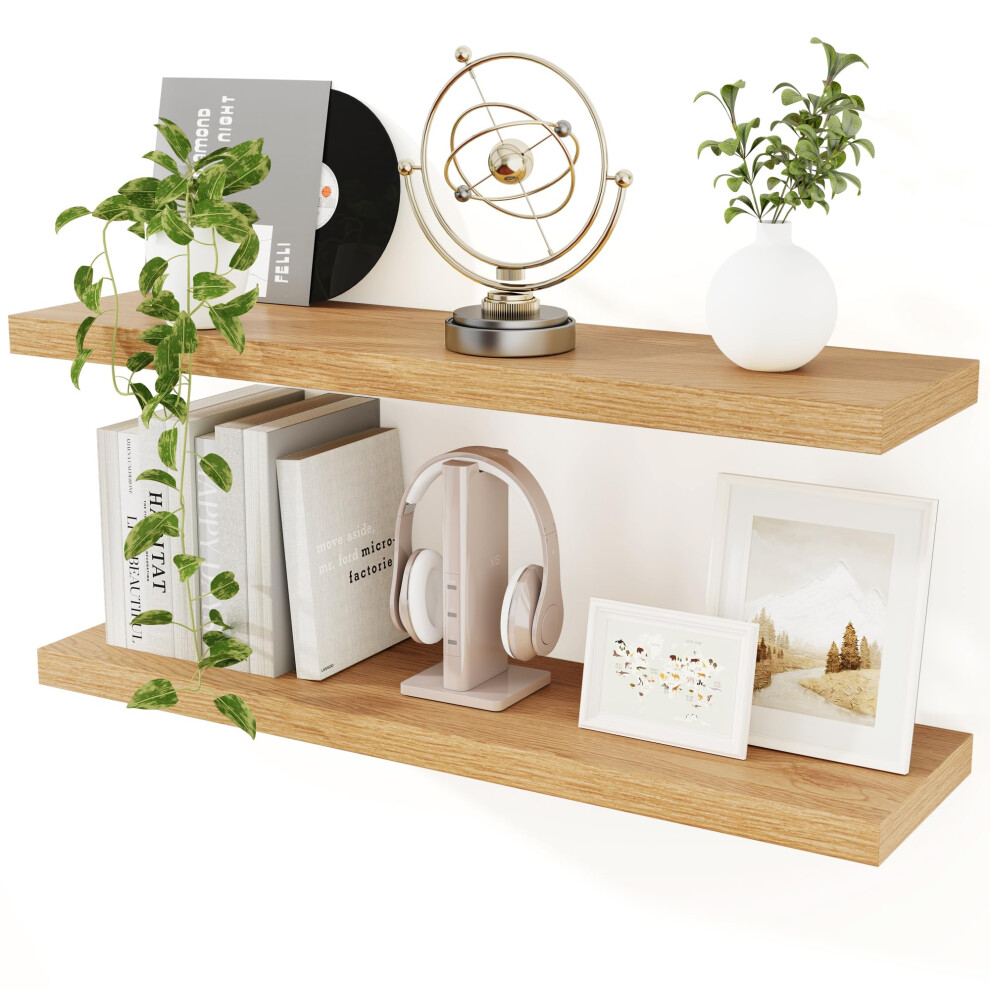 ONOTETUT 36 inch Natural Bathroom Shelves,Long Floating Shelves for Wall,Solid Wood Long Shelves Set of 2,Kitchen Wall Mounted Shelf (Natural, 36 Inch)