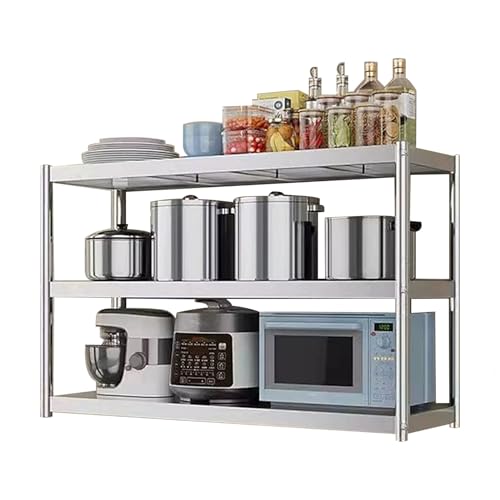 Renmlion 3-Tier Shelving Unit|Adjustable Height Storage Shelves Stainless Steel Shelving Kitchen Wall Shelf|Microwave Oven Stand Organizer for Home,Schools,Canteens(120x35x75cm)