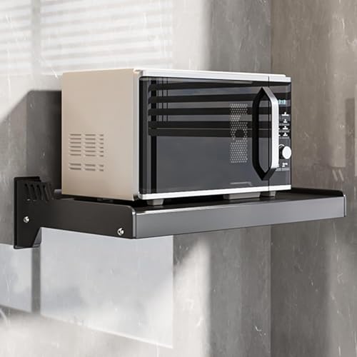 SanBouSi Microwave Wall Mounted Bracket, Space Aluminum Microwave Holder Microwave Shelf Stand for Kitchen 50 x 39.5 cm, Black