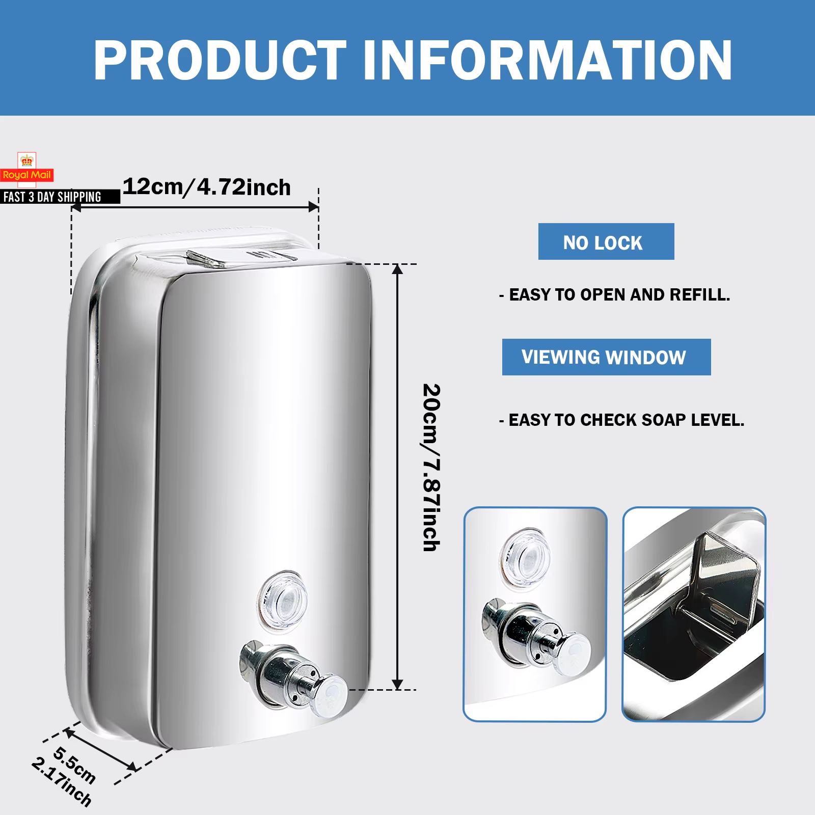 800ML/1000ML Soap Dispenser Stainless Steel Wall Mount Bathroom Liquid Soap Dete