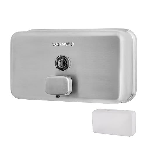 VANNSOO Wall Mounted Hand Soap Dispenser Bathroom, 1100ml 37oz Commercial Stainless Steel Liquid Soap Dispenser Wall Mount (Horizontal Brushed)