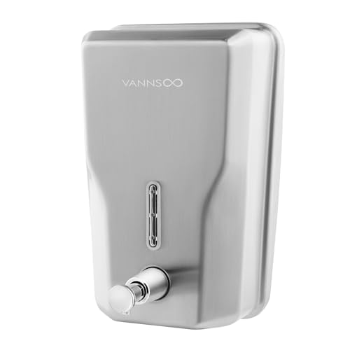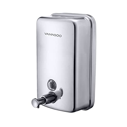 VANNSOO Commercial Soap Dispenser Wall Mount Stainless Steel Manual Liquid Pump Rust-Proof Leak Free for Bathroom (34 fl.oz./1000ml)