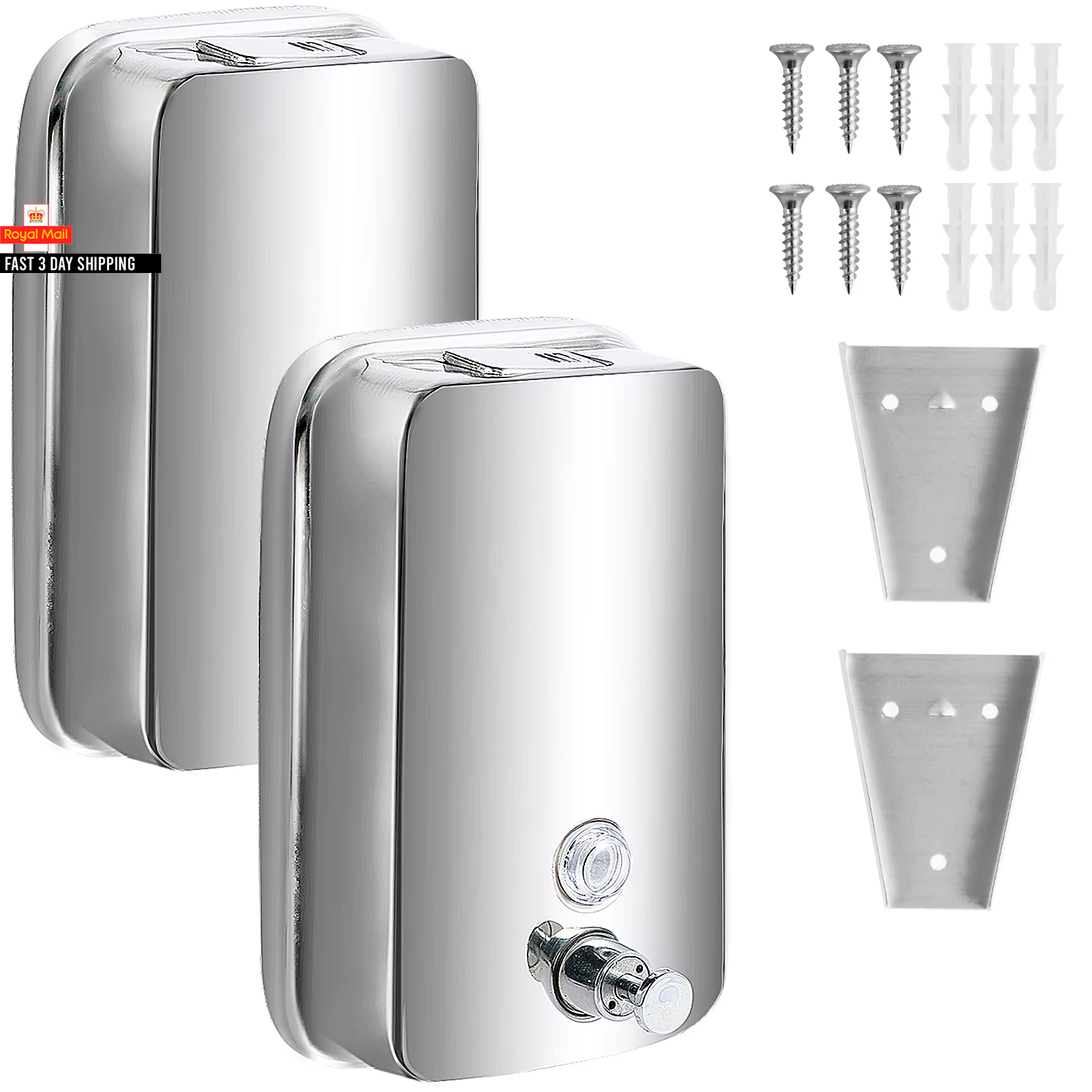 2X Manual Soap Dispenser 1000Ml Wall Mount Soap Dispenser Bathroom Commercial Soap Dispenser for Kitchen Restaurant