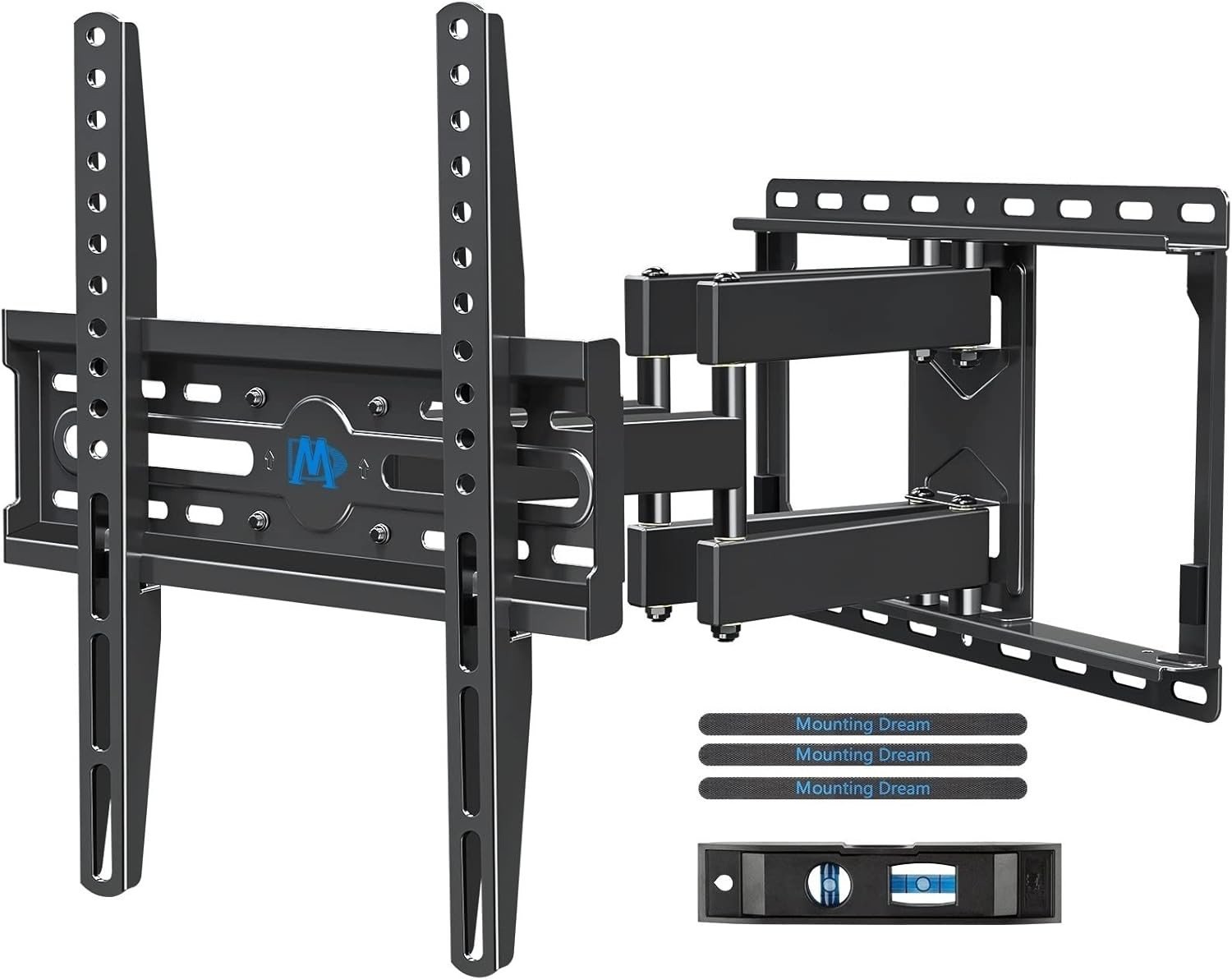 Mounting Dream TV Wall Bracket Mount for Most 26-65 Inch TVs, Max VESA 400x400mm, Tilt Swivel for TV Max 45kg, Full Motion Double Arms Fit OLED LCD LED Flat/Curved Screens, with Fischer Wall Plug
