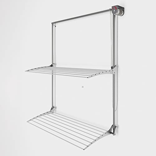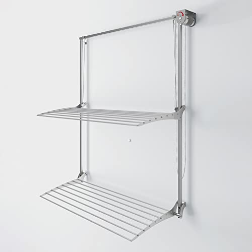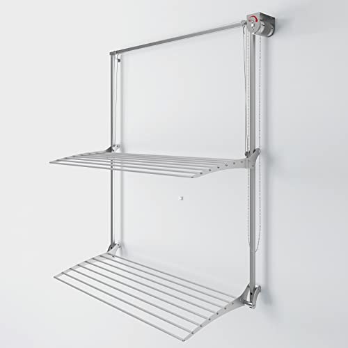 foxydry Wall mounted pulley clothes Airer, clothes drying rack, vertical drop down laundry drying rack in aluminium and steel (Grey, 100)