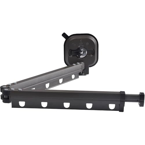 KITCHEN MOVE Python 125cm Aluminum Wall Mounted Clothes Airer-Expandable and Foldable-with 15 Hooks and Hanger Locations, Powerful Suction Cups for Balcony, Bathroom, Laundry Room, Aluminium, Black, L