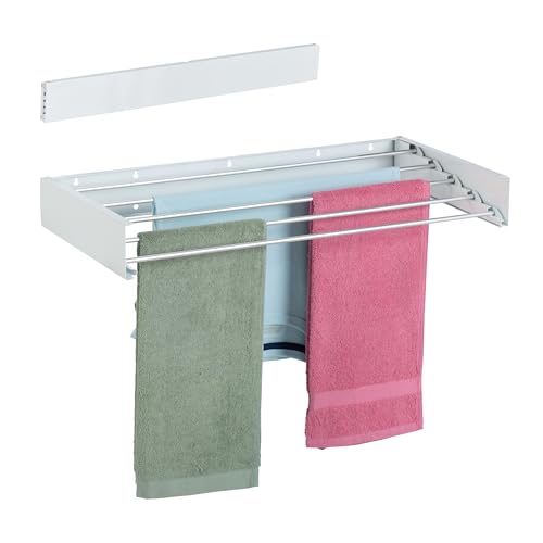 Relaxdays Wall-Mounted Clothes Airer, Folding, 15 x 80 x 40.5 cm, Space-Saving, Laundry Drying Rack, Extendable, White, Steel, Stainless steel