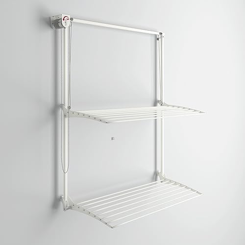 foxydry Wall mounted pulley clothes Airer, clothes drying rack, vertical drop down laundry drying rack in aluminium and steel (White, 100)