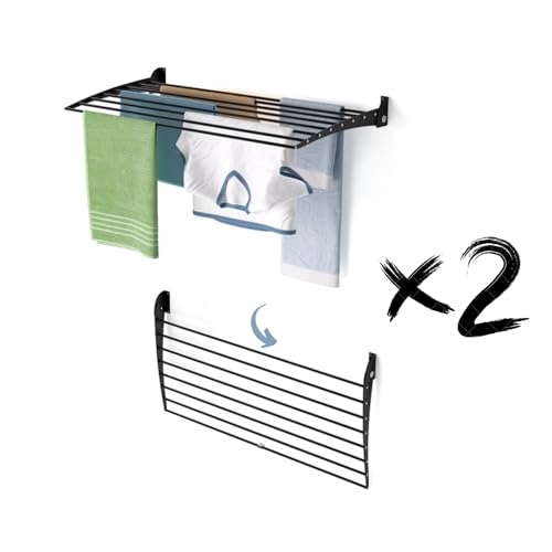foxydry Hide Wall Mounted Clothes Airer Balcony Wall Drying Rack Outdoor Indoor Retractable Clothes Airer 2 Pieces 101 x 50 x 13 cm (2 x 101 cm, Anthracite)