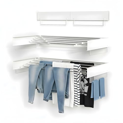 ZXQUEGF Folding Clothes Hanger For Room Drying Rack Clothing Foldable,Wall Mounted Collapsable Laundry Airer Closet Storage Organization Dry,Retractable Clotheshorse The New