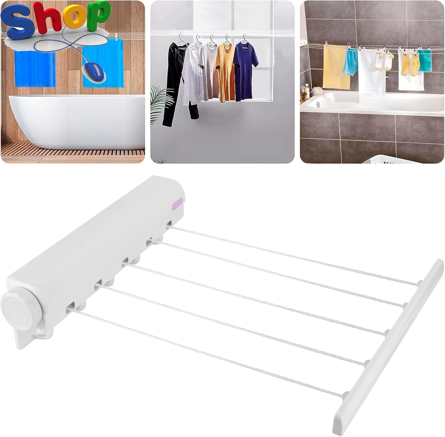 Retractable Clothes Airer - Clothes Airer for Drying Clothes, Wall Mounted Clothes Drying Rack for Washing and Drying Clothes | Clothes Lines for Space Saving Balcony Airer
