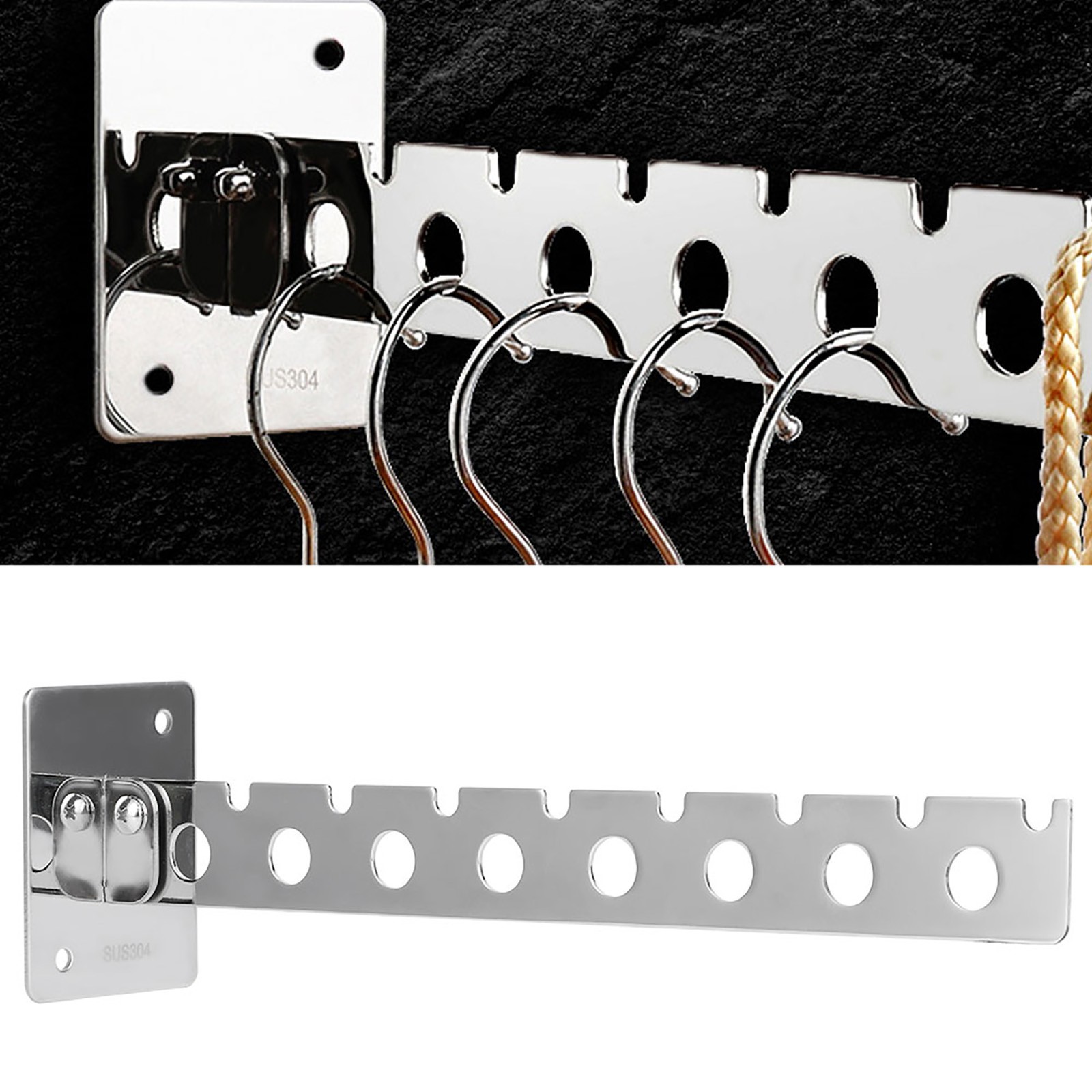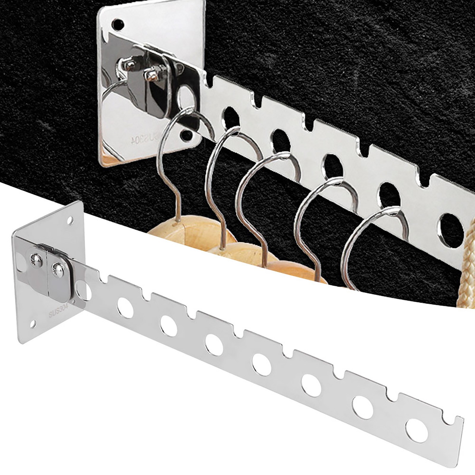 8 Hole Foldable Hanger Wall Mounted Space Saving Clothes Drying Rack Closet Kit
