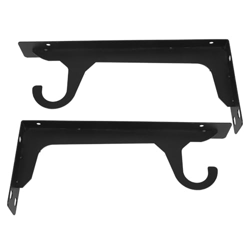 Lurrose 2pcs Heavy Duty Wall Mounted Wardrobe Rod Brackets with Hooks, 12 Inch Black Metal Closet Rail Support for Hanging Clothes and Shelf, Suitable for Home and Closet Organization