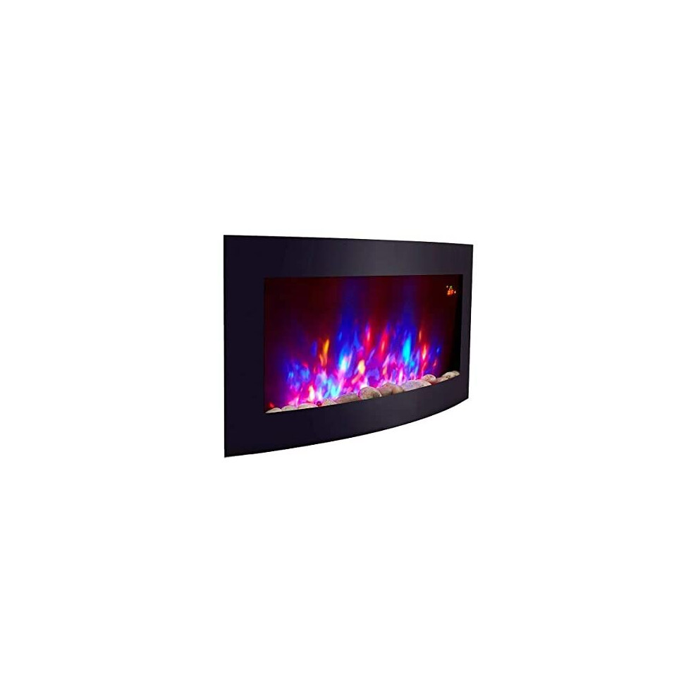 Endeavour Fires Egton 36” Wall Mounted Electric Fire with Black Curved Glass, 13 Colour LED Mood Lighting, 1 & 2kW Heater, Realistic Flame Effect & 7-Day Remote Control