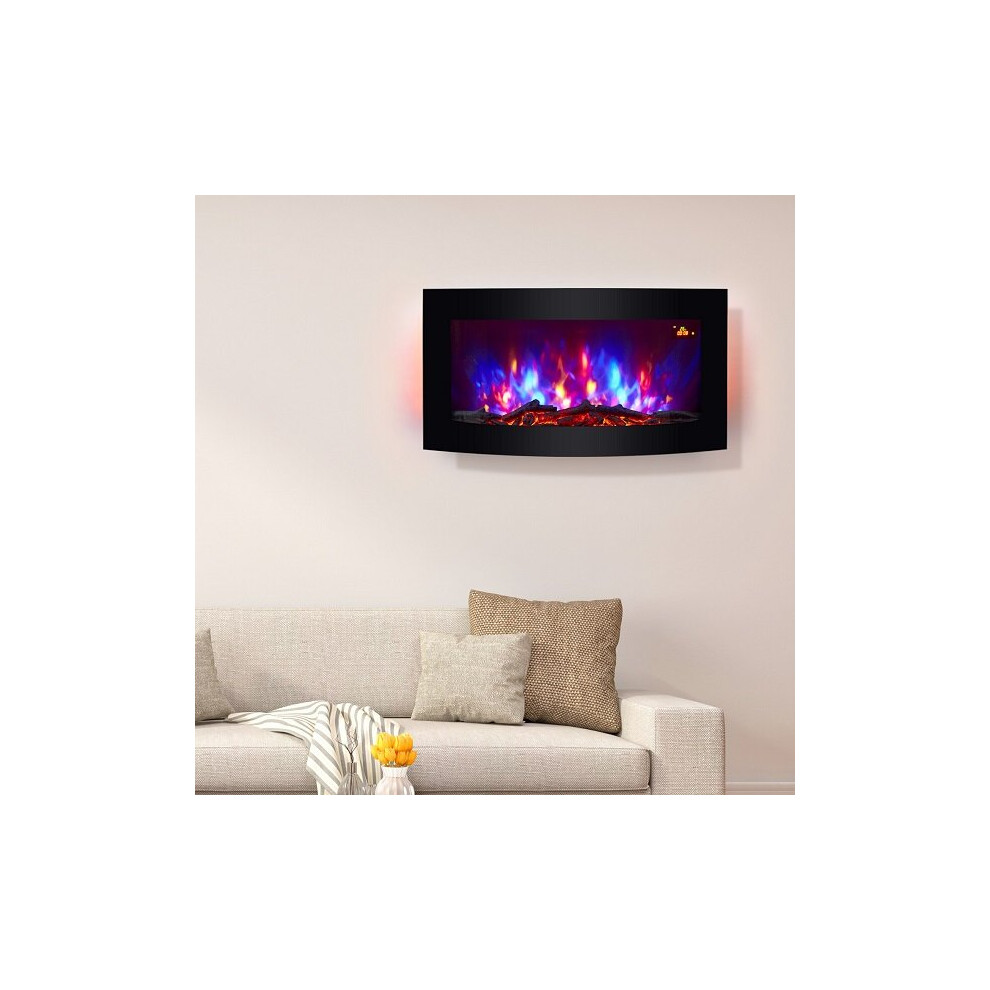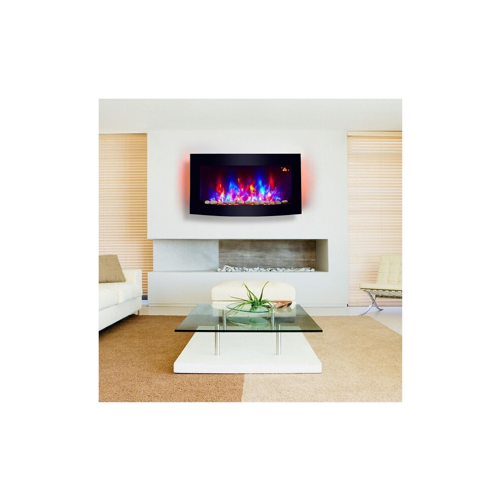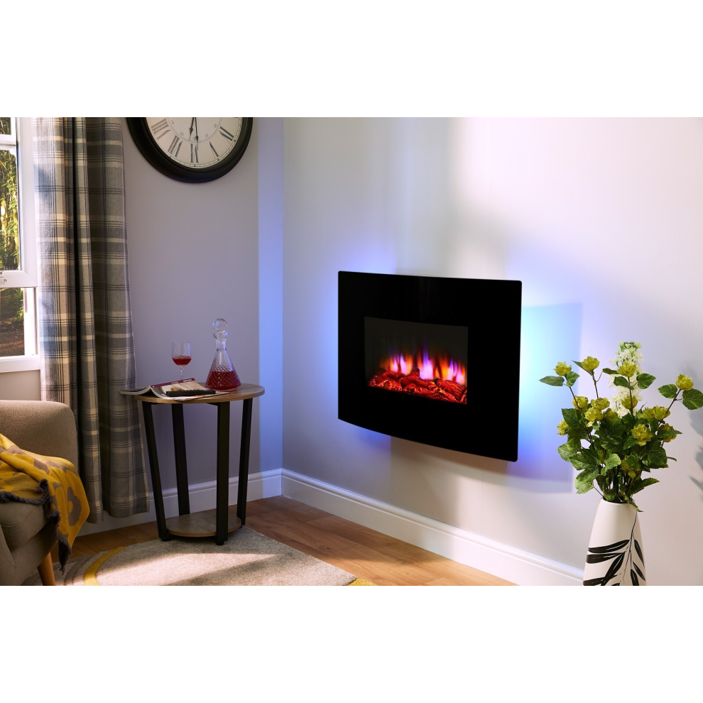 Wall Mounted Electric Fire Black Curved Glass