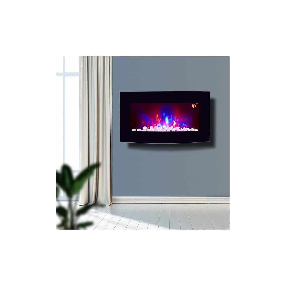 2018 New Large Wall Mounted Electric Fire Place Fireplace Heater with Black Curved Glass Screen Plasma Style 2000W MAX