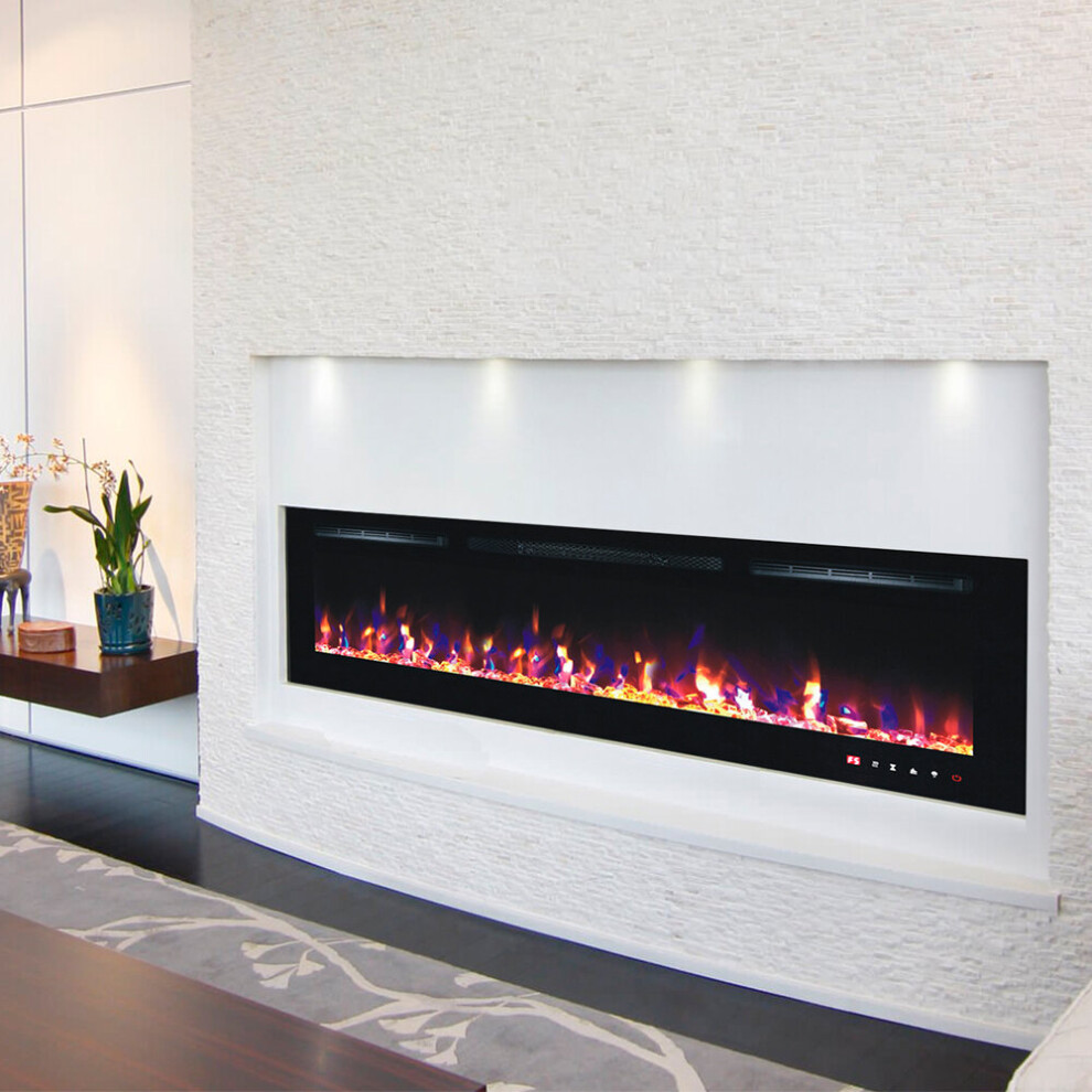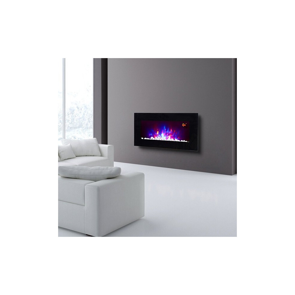 PREMIUM PRODUCT 72inch Black Wall Mounted Electric Fire with 3 colour Flames and can be inserted (Pebbles, Logs and Crystals)!