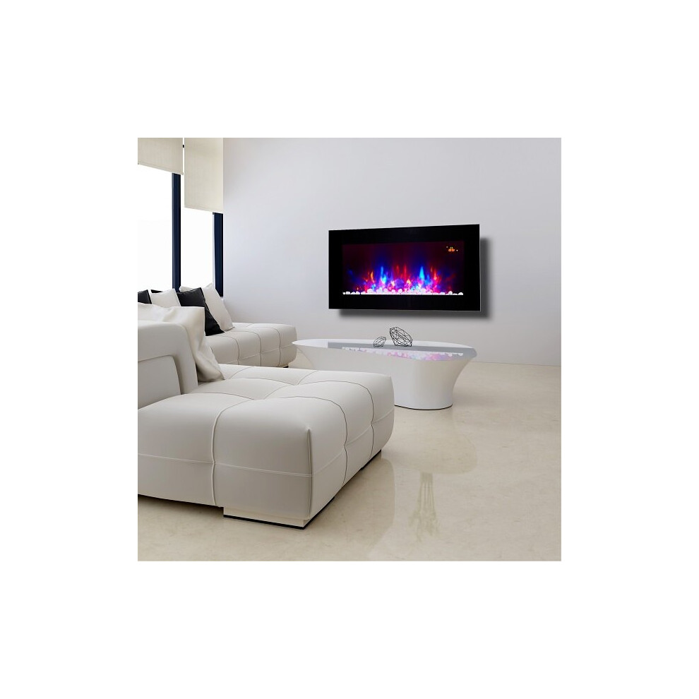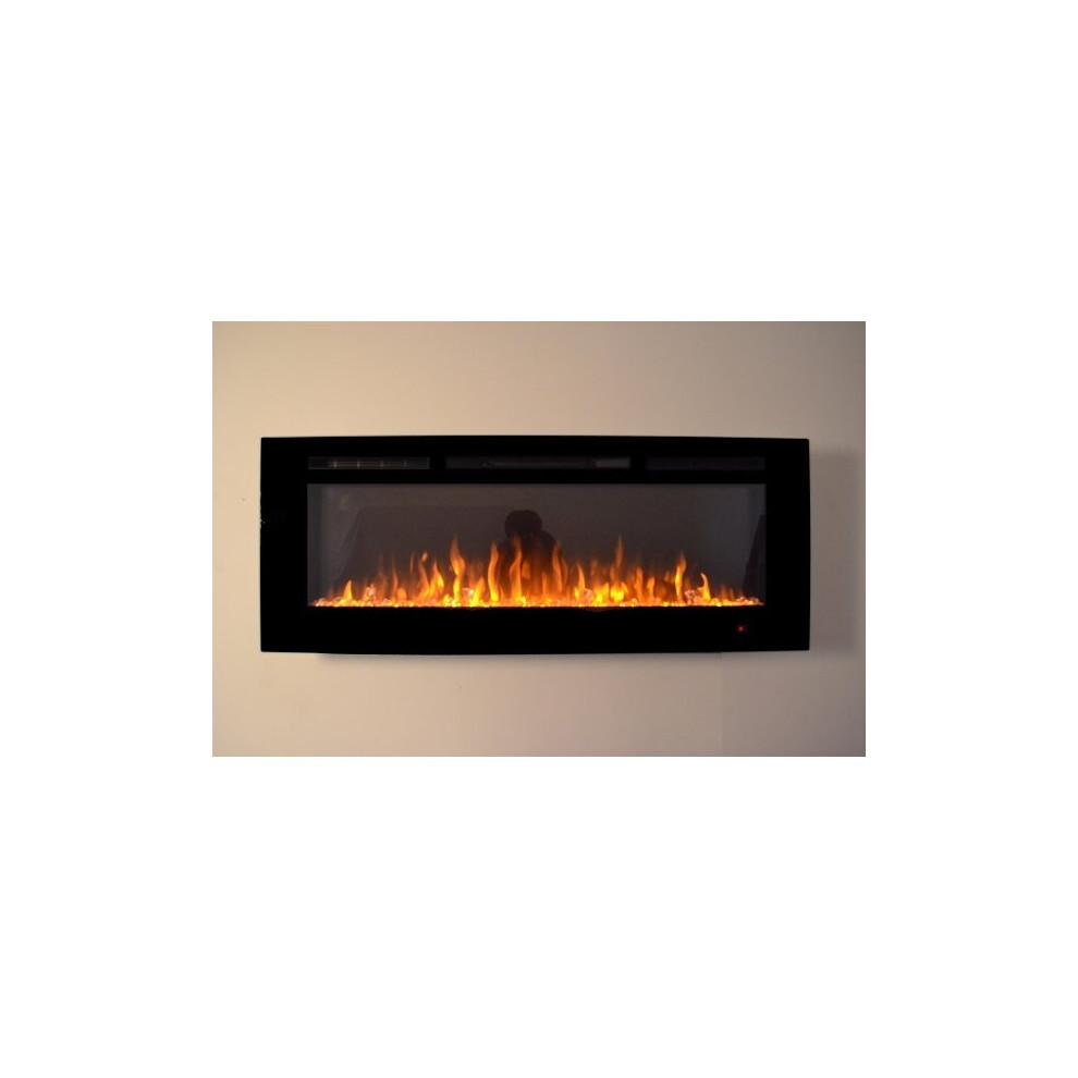 NEW PREMIUM PRODUCT 50inch Black Wall Mounted Electric Fire with 3 colour Flames and can be inserted (Pebbles, Logs and Crystals)!