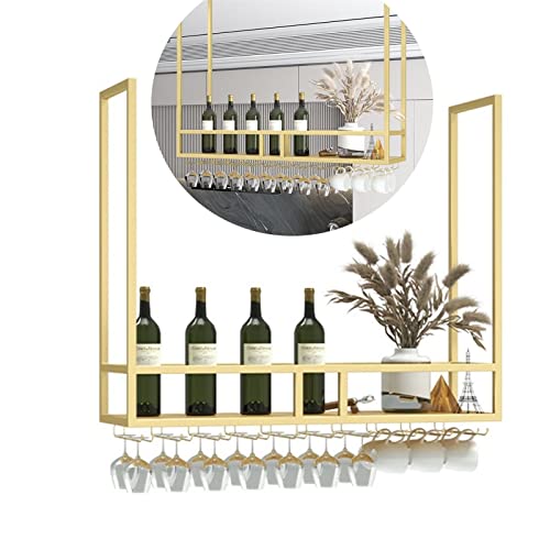 XAUBXYVR Ceiling Wine Rack Plant Rack American Vintage Wine Rack LOFT Retro Indoor Plant Rack European Wall Mounted Plant Rack Hanging Wine Rack (Color : Gold, Size : 100X30X80CM)