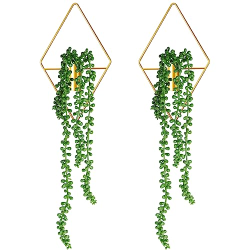 Jexine 2 Pcs Boho Wall Decor Gold Wall Art Hanging Planters with Artificial Plants Wall Mounted Metal Wall Decor Home Decor Display Wall Art Bedroom Bathroom Living Room(Succulent Plants)