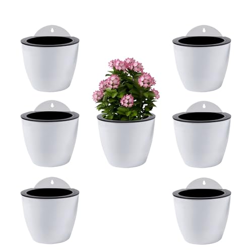 ShoppeWatch Self Watering Wall Planters for Indoor Plants 7 Pack Large 7 Inch with Hooks | Outdoor Wall Pots for Plants | Wall Hanging Planters | White Wall Mounted Planters PL35