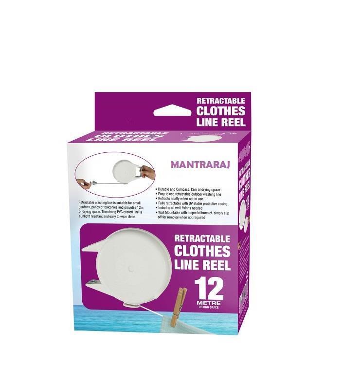 Heavy Duty 12m Retractable Automatic Clothes Washing Line Reel Wall Mounted