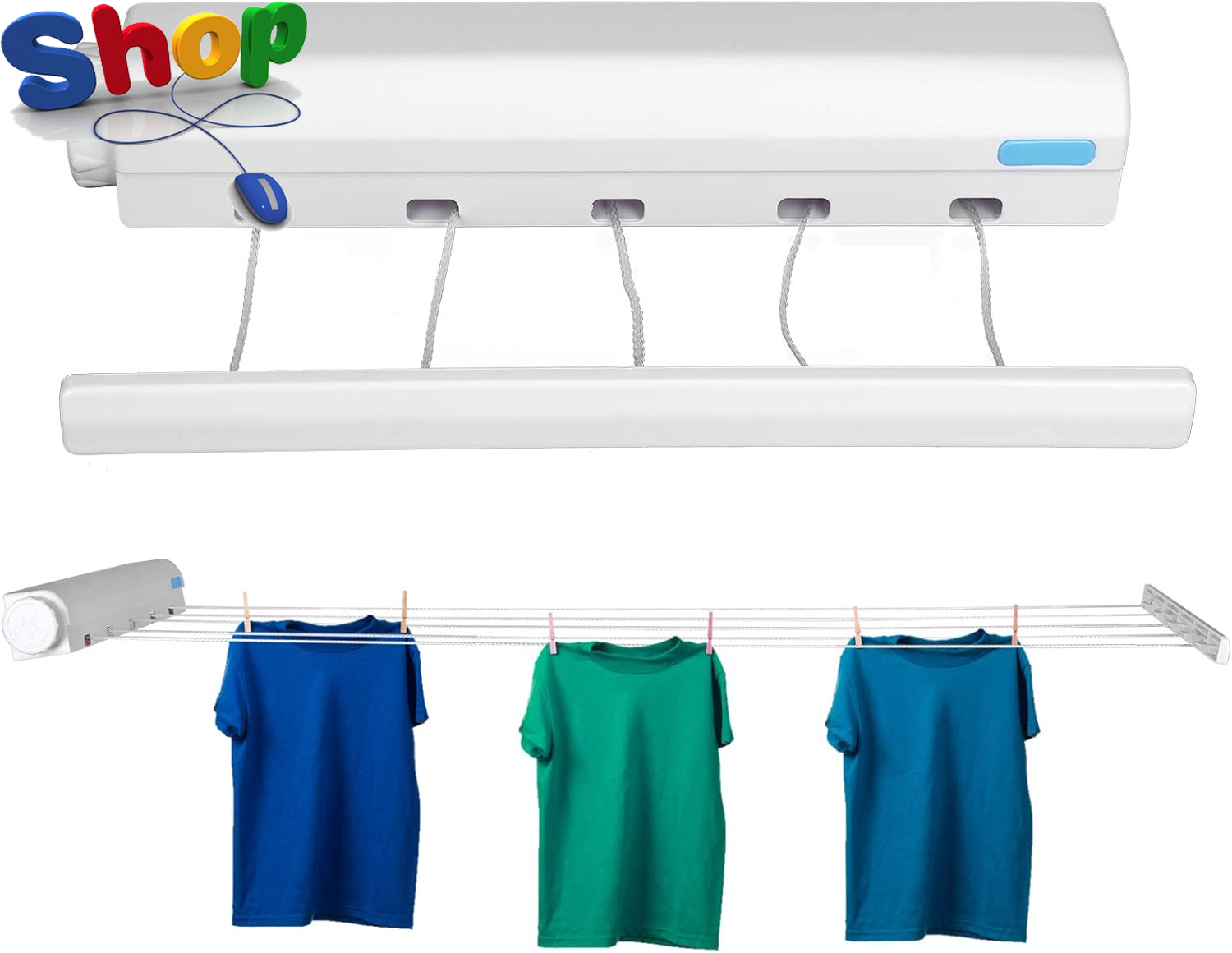 Wardrobe Shelf Basket Retractable Clothesline For Indoor And Outdoor Use Heavy Duty Stainless Steel Rustproof Washing Line Adjustable Length Wall Mounted Drying Rope Laundry Solution ( White, 9X9X4cm)